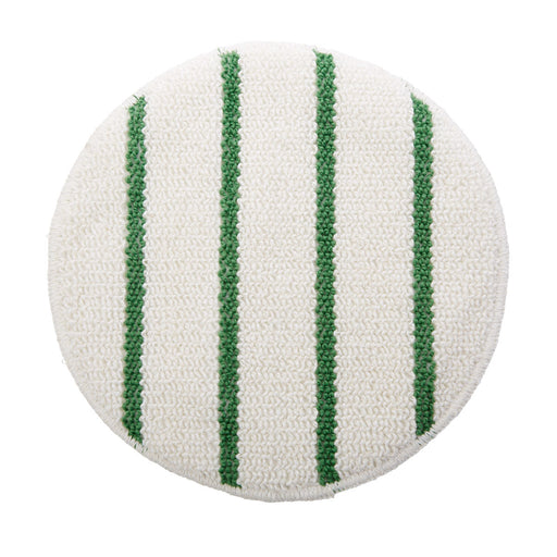 17" White Carpet Scrubbing Bonnet w/ Green Agitation Stripes