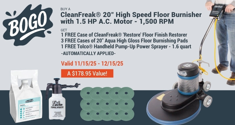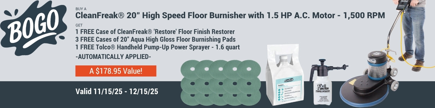 View full detailsCleanFreak® 20" High Speed Floor Burnisher w/ 1.5 HP A.C. Motor - 1,500 RPM