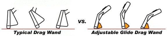 To see how the glide works, you can view a diagram in the extra product pictures that shows how the adjustable glide (shown in orange) can slide up and down as you move across the carpet, creating different angles at which the wand makes contact with the carpet.