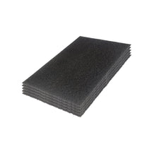 These pads can be used on 14" x 20" orbital machines like our 14" x 20" CleanFreak® dry surface strip oscillating floor machine. Each case comes with 10 pads that are 3/8" thick and constructed with abrasive particles are distributed throughout the synthetic fibers.