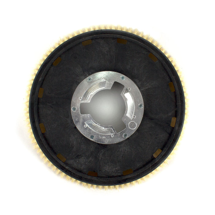 The polishing and light buffing brush is made of natural tampico bristles that are soft to allow you to buff and polish your decorative floors including floors like marble, travertine, or terrazzo. The 14-inch brush fits on many of our 16-inch floor scrubber buffers and comes with a clutch plate that fits 95% of these floor buffing machines. For other types and sizes of brushes, be sure to check out floor buffer brushes to find the right brush for your floor buffer and floors.