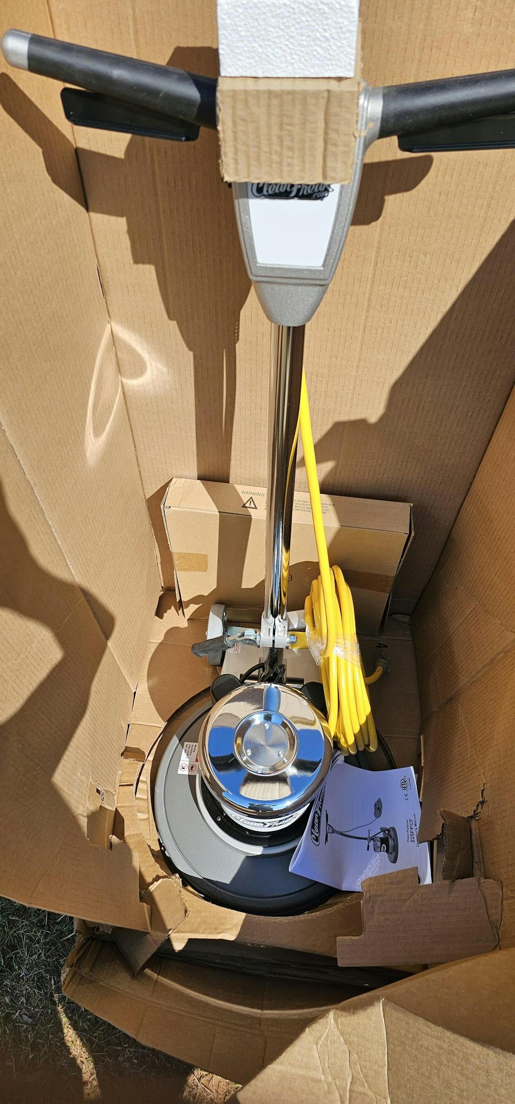 At 91 pounds with a 1.5 HP motor, you'll have plenty of power and down pressure to easily clean, polish, and strip any surface. The all-steel triple planetary transmission gives you a sense of security that this heavy-duty transmission will last and last. If you want to use this 17" floor buffer to scrub carpets, you can do that as well. It has dual capacitors to help it at start-up, making it a breeze to start on heavy friction surfaces.