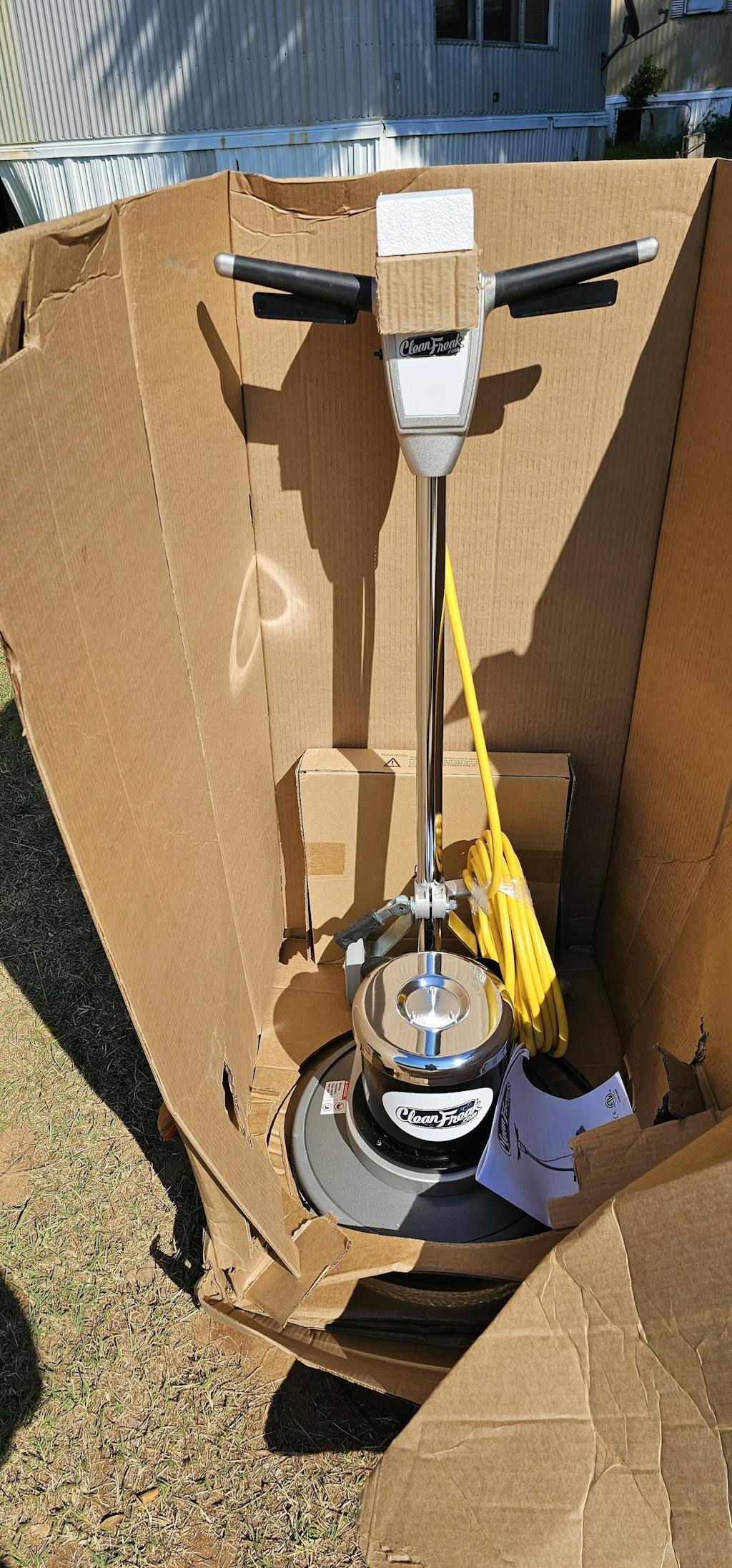 Weighing in at 91 lbs, this floor buffer offers plenty of down pressure to thoroughly clean any area.