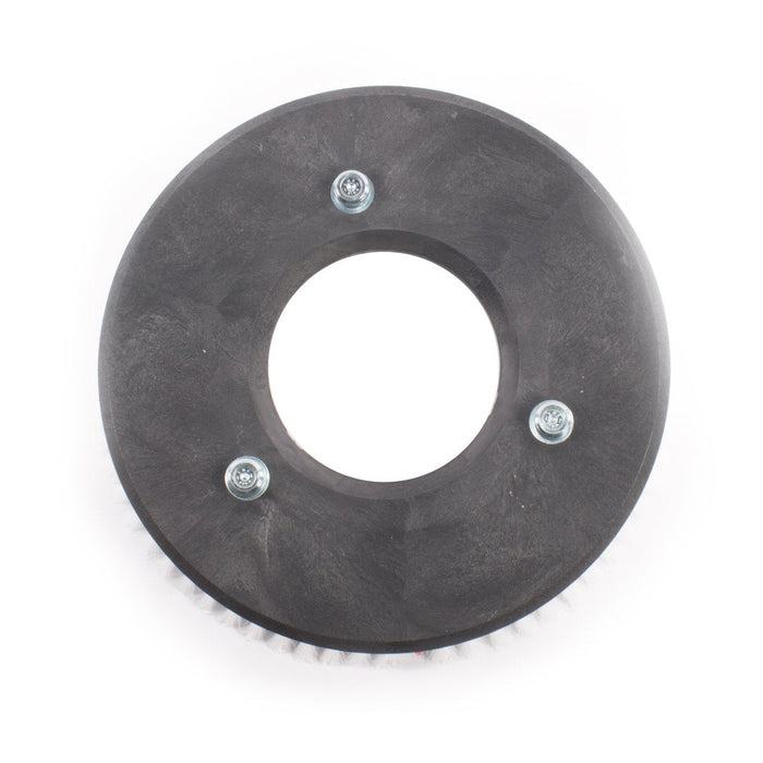The 3 mounting lugs located on the top of the brush, as well as the pad driver, make mounting & removal extremely easy. For removal, simply raise the head and spin the brush to spin it off. For mounting, simply center the head of the auto scrubber over the brush, lower the head, and tap the scrub button. This will spin the head and should automatically mount the brush for extended scrubbing. *Please Note: This brush formerly had a part # of IES-SPPV01188.