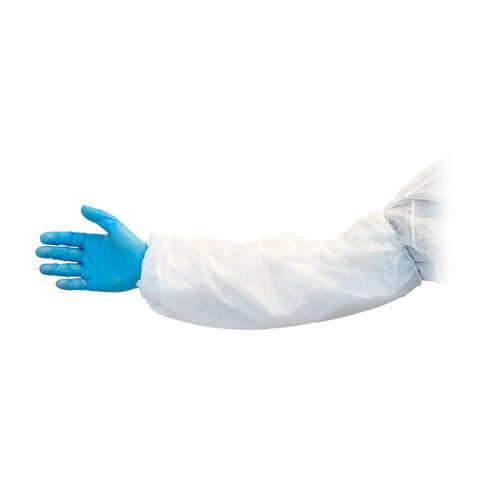 18" White Disposable Food Service Arm Protection Sleeves w/ Elastic Ends (Polyethylene) - Case of 1000