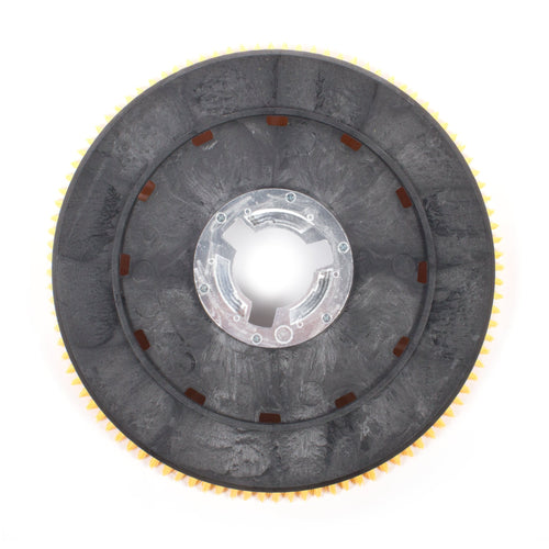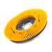 The yellow poly bristles found on this brush are great for scrubbing light soils on waxed and commercially finished floors. The brush is manufactured to exacting performance specifications for durability and peak performance. Polypropylene bristles are actually slightly stiffer than nylon, but are a more economical option because they will wear down faster than nylon. The bristles themselves are 1.75" long and can be used daily on finished surfaces to clean light to medium soils.