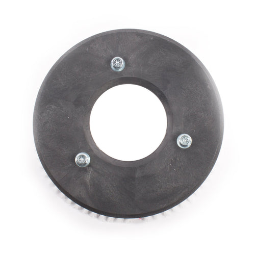 This white floor scrubbing brush is specifically designed for use with the 20" Tennant T581 ride on automatic floor scrubber. The poly bristles can be used on many different floor types from unfinished concrete to polished terrazzo. It features a red bristle wear strip that indicates when it’s time for a replacement.