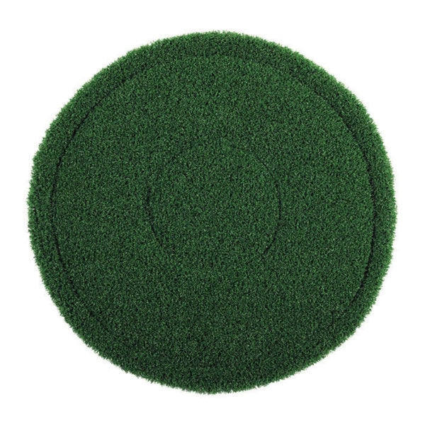 These 20” green turf pads are specially designed to gets down into the cracks and crevices to effectively clean uneven floors and deep grout lines for unsurpassed cleaning results. Great for tile, concrete, and terrazzo, this pad doesn’t need harsh chemicals and can be used with water or other neutral cleaning solution. The pads are flexible and lightweight for easier application and swapping out. The pad's open construction allows water to flow through to the surface to allow for optimal scrubbing, and will produce maximum results every time! With proper use, each pad should cover up to 300,000 square feet. It is to change the pad out often to flush out dirt and debris with a high pressure garden hose between uses.