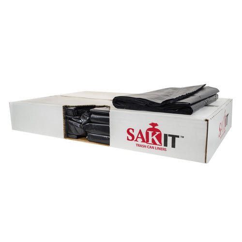 These Sak-It 12-16 gallon black trash can liners are made from up to 70% recycled resin. These environmentally responsible bags are heavy duty and ideal for most trash applications. Bag size is 24" x 32" with a 1.1 mil thickness. The linear low-density polymer makes these garbage bags more tear-resistant and flexible. The star seal bottom helps prevent leaking.