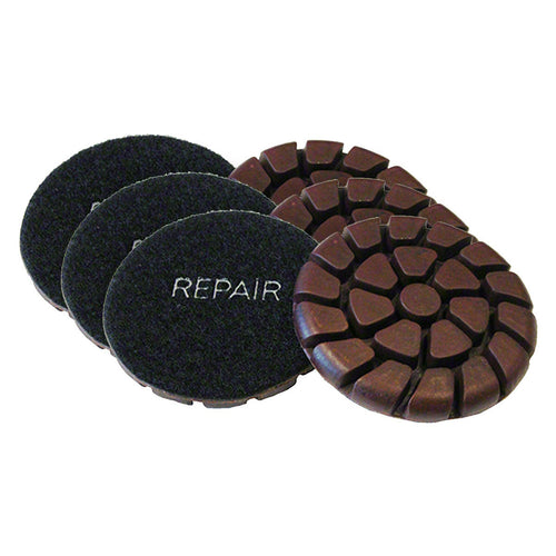 This Pioneer Eclipse decorative floors polishing and restoration system is more cost-effective and simpler than any other process in the industry. It can be summed up into 4 segments; repair, polish, protect, and maintain. These PowerPolish discs are used in the restoration process of concrete, terrazzo, marble, quarry tile, and natural stone floors. The 3" discs come as a package with 6 discs per kit of each individual grit. There are different grits available, depending on how much of a shine you're looking for, but you do need to need buy each individual grit in kits of 6.
