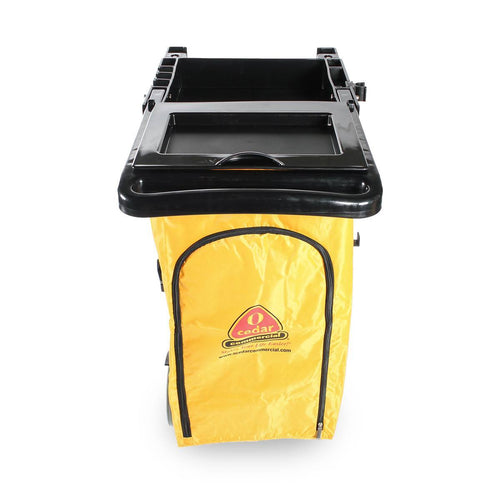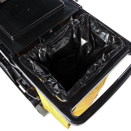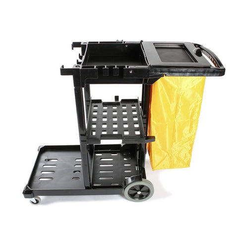 This "top of the line" janitor cart is much quieter to push around than those heavy metal units. The cart is gray in color, and comes with a strong vinyl yellow bag, which can be used for trash or laundry. Not many other janitor or cleaning carts come with the rugged durability that this cart is known for. The economical price and rugged durability make it the best bang for your buck we have to offer. Take a look at our complete line of janitorial & other cleaning carts for more options.