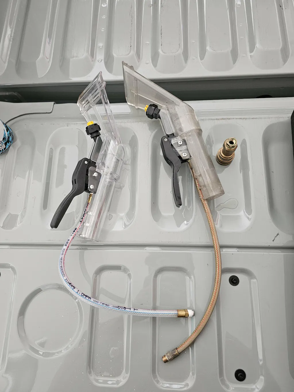 Great for cleaning upholstery, drapes, and fabric areas, this tool features a 1.5" vacuum hose connection with a 1/4" threaded solution line connection and will work with up to 75 PSI machines. Due to the plastic construction, this tool should not be used with heated carpet spotters or extractors.