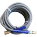 This 50' pressure washer hose comes with 1 male quick connect and 1 female quick disconnect on each end. The hose is 3/8" in diameter and can be used with pressure washers with up to 4,000 PSI. This hose can be used with any of the pressure washers we have to offer. It can be utilized with both hot and cold water models, and is rated for use with water up to 250° F.