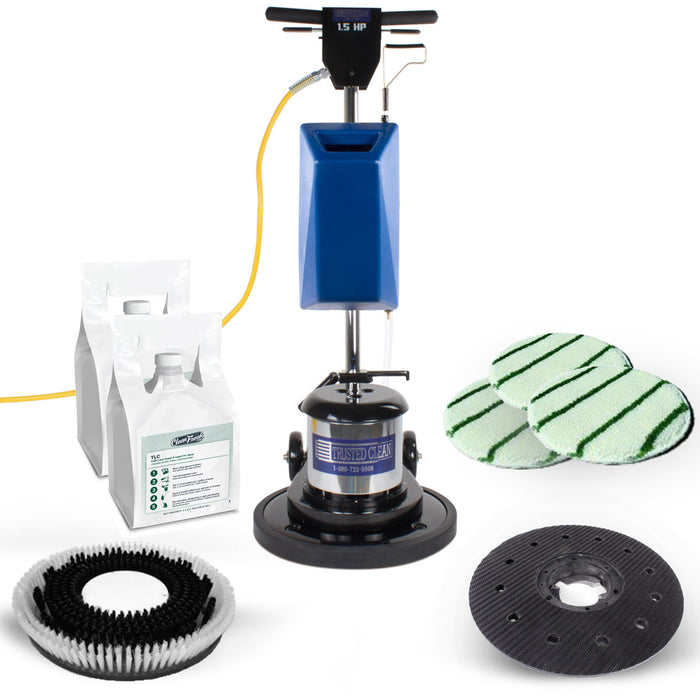 Trusted Clean Basic Carpet Scrubbing Package w/ 17" Floor Buffer, Carpet Brush & Bonnets