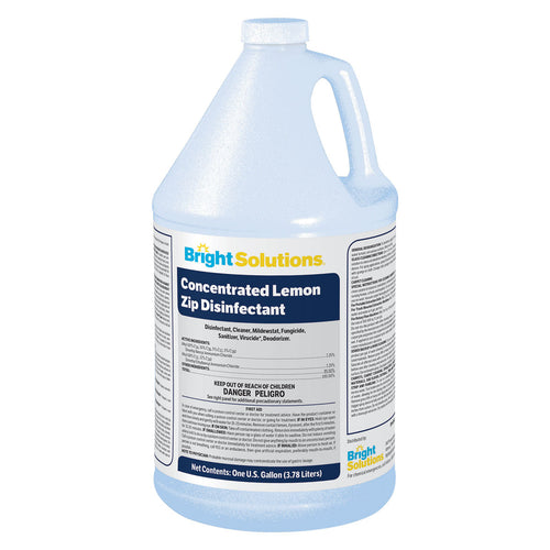 Bright Solutions 'Lemon Zip' is a no-rinse cleaner that also disinfects and deodorizes, all in 1 simple step. It is a real labor-saver! This product is great for use in vet clinics, hospitals, businesses, office buildings, public restrooms, hotels, and schools. It is designed for use on washable hard, non-porous surfaces, like glass, metal, plastic, sealed stone, and vinyl. The perfect answer for getting rid of mold and viruses, while leaving a room smelling lemon scent.
