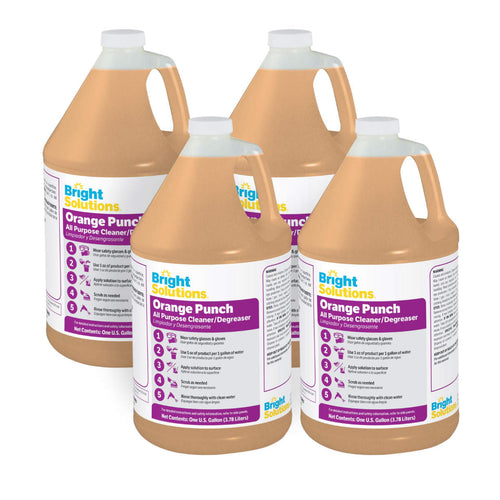 Bright Solutions® Orange Punch is a highly concentrated organic citrus emulsifying cleaner and degreaser which can be used to loosen and dissolve heavy encrusted grease, oil and carbon deposits. It is formulated with d’Limonene for deep penetrating action and soil removal. Excellent for removing rubber marks, resins, glues, inks, high temperature lubricants, etc. Natural citrus extracts attack grease, fats, petroleum, tar, and other difficult industrial cleaning applications. Dilutable with water for added economy. Use in grease traps, lift stations, trash compactors and garbage chutes for cleaning and deodorizing. Safe on metals.