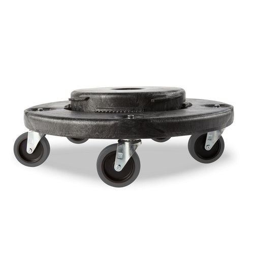This Rubbermaid Commercial quiet dolly provides easy mobility and maneuverability when collecting and transporting heavy loads with the 20, 32, 44, and 55 gallon Brute trash containers.