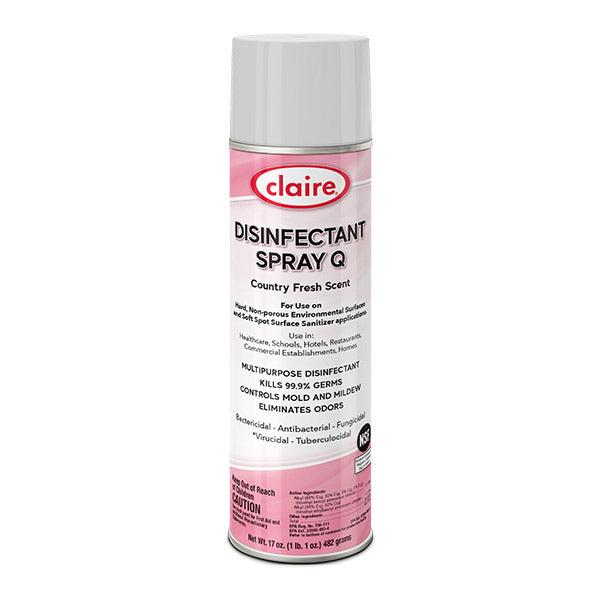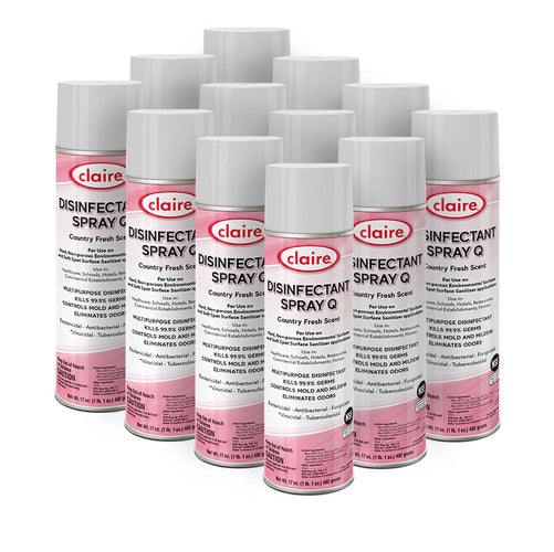 This Claire multi-purpose disinfectant spray is a hospital-grade bactericidal, antibacterial, fungicidal, virucidal, tuberculocidal that is effective against a wide range of bacteria, viruses, and fungi when used as directed. The spray comes in 17oz spray bottles and is packed 12 to a case. The spray also kills 99.9% of common germs and controls mold and mildew while eliminating odors. A great spray to have to prevent outbreaks in schools, hotels, restaurants, hospitals, ships, buses, and more. For use on hard, non-porous surfaces like tables, chairs, furniture, gym equipment, and more. Want more options to protect others against the spread of these contagions? Check out our disinfectants & sanitizers area to find all the wipes, liquid disinfectants, and sprayers help you fight off these contagions.