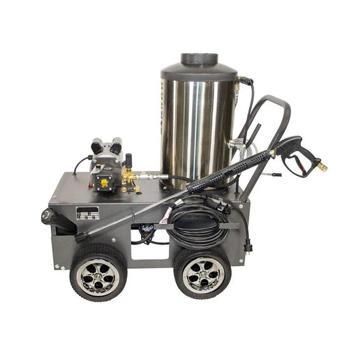 The CleanFreak #3010E hot water pressure washer incorporates a heavy-duty 120-volt, 20-amp electric motor and has a triplex ceramic plunger pump with 3 (GPM), and 1,000 (PSI) output ratings. This machine is housed in a durable powder-coated heavy-duty steel frame. It features a durable molded polyethylene fuel tank which blocks dreaded corrosion formation. The need for tank replacement is erased from your maintenance schedule. The fuel-conserving, high-efficiency burner significantly decreases fuel and maintenance costs over the lifespan of the unit.