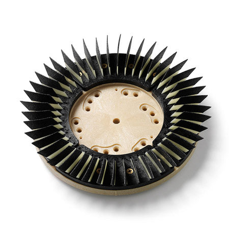 This 16 inch, 100 grit Diamabrush polymer floor polishing tool is part of a system that will transform your concrete floor into an easy to maintain polished floor. Each tool contains polymer blades that progressively fills in pores as you work your way down from low grit (like those in the 50 grit tool) to finer blades like the ones in the 200 grit tool. This results in a beautiful retail finish without the need for expensive, heavy machines or harsh chemicals.