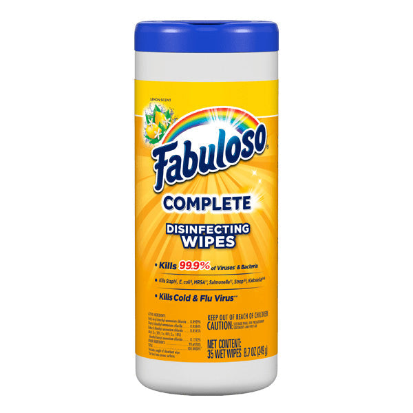 Fabuloso® Complete Lemon Scent Disinfectant Wipes (7” x 8” | 90 Wipe Canisters) - Case of 4