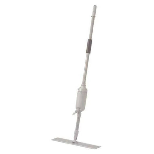 The pressurized spray head will continuously put down fresh solution as you scrub. With the 24 oz. solution tank, you can scrub up to 3,200 ft2 on a full tank. The handle is a light-weight powder coated steel with 2 convenient high density rubber comfort grips. The aluminum head is 16.5" that can hold either 18" or 22" mop heads. Overall the entire system weighs 2 pounds empty, and 4 pounds with a full solution tank.