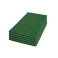These green rectangular deep scrub pads are typically used with one of our dry stripping floor machines (a.k.a. oscillating floor scrubber), or any rectangular auto scrubber that has a 14" x 20" pad driver. The Clarke Boost auto scrubber is an example of one of these auto scrubbers that can be used with these pads for heavy duty scrubbing or light stripping. Each pad can remove heavy dirt and scuff marks prior to recoating. To maximize the life of each pad, simply change them out frequently and rinse out thoroughly after each job. Each case contains 5 pads that are 1” thick, and can be used on both sides.