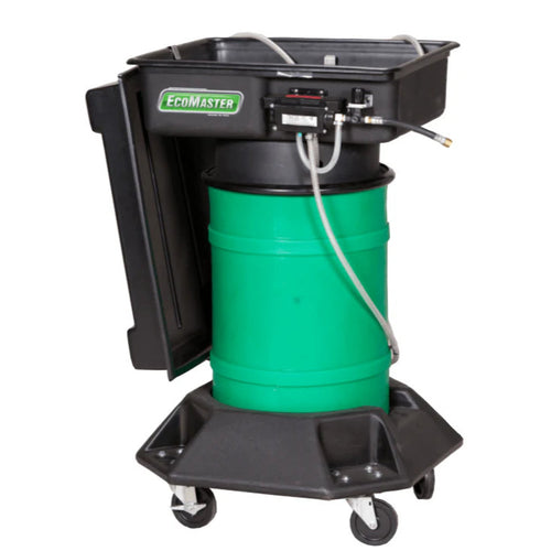 This EcoMaster heated brake & auto parts washing sink is very similar to our brake parts cleaning & wash sink, except for this model is heated and uses aqueous solutions. It can handle 8 to 12 gallons of an aqueous water-based parts washing solution when in operation. The heavy-duty drum dolly has two locking casters and two regular casters for quick movement from spot to spot. This is the perfect tool to have next to you as you rebuild brakes on any moving vehicle. The basin/sink can also be placed underneath the area you are working on, to catch all brake parts and dust. The aqueous solution helps to keep that solution from going airborne.