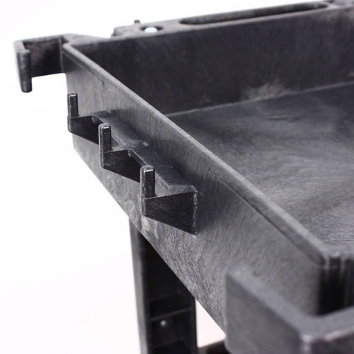 This "top of the line" 3-shelf janitorial cart is virtually indestructible with its seamless, structural plastic design. While boasting the largest work space available in its class, this janitorial cart from Impact is much quieter and weighs less than the metal units. The cart has molded-in plastic hooks to support the strong 25 gallon zippered vinyl yellow bag. It also comes with a spot to store an upright vacuum.