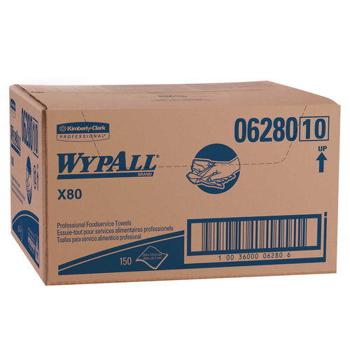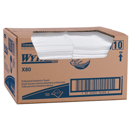Kimberly-Clark WYPALL X80 foodservice towels are a great option if you are looking for a durable, reusable yet disposable, towel for your food-related company or service. These wipers are constructed with high-tech HydroKnit fast-absorbing material to soak up as much moister in a single pass as it can. They are also made to be durable for repeated scrubbing and are also treated with Antimicrobial treatments that inhibit the growth of odor-causing bacteria which leads to that "sour" smell that comes from reused food-service towels and rags. These contaminant-free commercial cloths are also favored over industrial rags which can also hold onto dangerous chemicals, even after they are washed.
