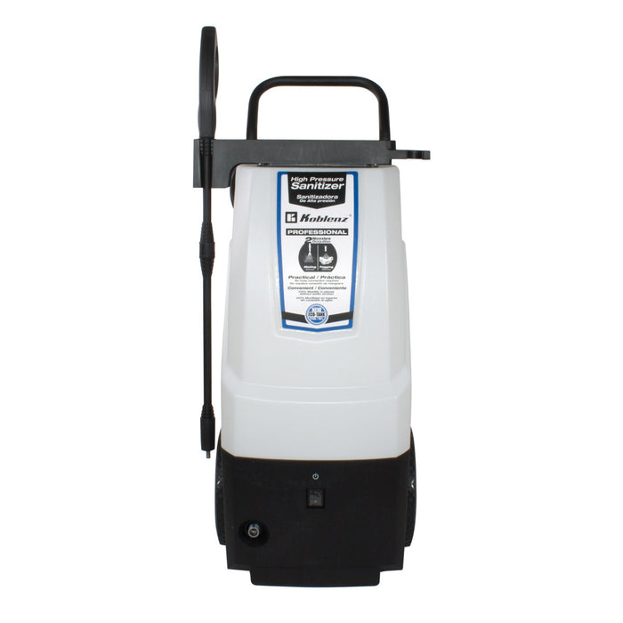 The Koblenz HLT-390 is a high pressure, 1900 PSI sprayer for dispersing disinfectant and sanitizer at a large scale. This self-contained unit can hold up to 8 gallons of solution to cover large areas without the need to refill. The unit comes with high pressure gun that comes with two tips. One tip is the fogging tip that is great for close quarters where you need to control the amount of disinfectant you lay down. The second tip is a misting tip that lays down a little more than the fogging tip but is useful in larger areas. The unit is equipped with two wheels, a 16 foot high pressure hose and a long 35 ft power cord to give you the ability to spray in large areas before having unplug and relocate. Be sure to check out Koblenz's Disinfectant TOTAL chemical, which has been designed to use with this sprayer. For other options with different capacities, check out our large area disinfectant & chemical spray applicators to find the best unit for your job.