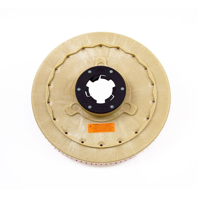 This 20" pad drive is a bristle style driver that holds floor buffing, floor scrubbing & floor stripping pads. The pad or bonnet that you use with this machine is kept in place by the bristles on the pad driver. The bristles may look like a brush, but cannot be used in direct contact with the floor!