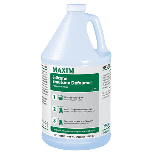 This Maxim Silicone Emulsion Defoamer is a unique formulation that quickly and effectively reduces foaming in vacuum recovery systems. It works great in recovery tanks of carpet extractors, automatic floor scrubbers, and wet/dry vacuums. It reduces the frequent emptying of filled recovery tanks due to foaming. Fast and effective, this product destroys bubbles and foam on contact. This helps to prolong the life of your equipment by reducing the potential of foam to be sucked through the vacuum motor during recovery.