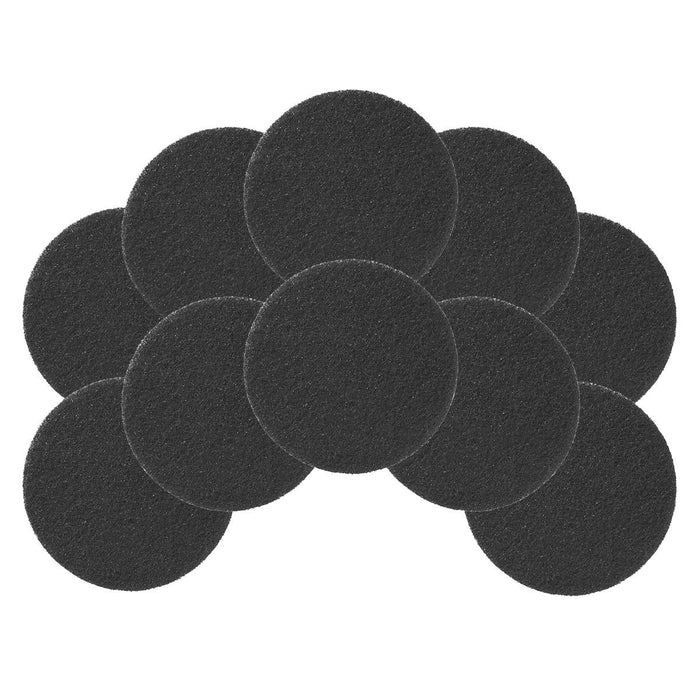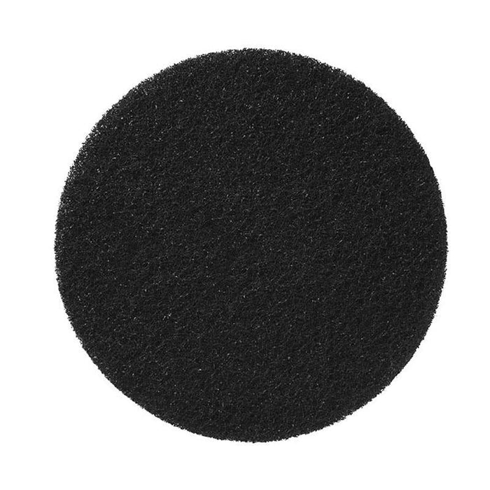 These 8" black stripping pads come 10 to a case and are aggressive for consistent wet stripping applications. The pads are 1” thick and are used use on machines that run between 175 and 350 rpm. These pads are manufactured for the use with the MotorScrubber® 8" Portable Scrubbing Machine to successfully strip the wax around baseboards and in hard to reach in corners.