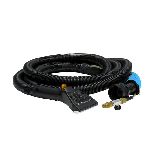 This Mytee upholstery tool features dual glide slots and a unique spray bar designed to work both ways while leaving your upholstery cleaner quicker. The housing is housed in a powder-coated full metal construction to make it extra durable for years of use. The Dry GT has a triggerless design that protects against carpal tunnel syndrome and other symptoms of wrist strain and fatigue. The Dry GT comes with an extra flexible 15 ft. vacuum and solution hose combo to give you ample reach during cleaning.