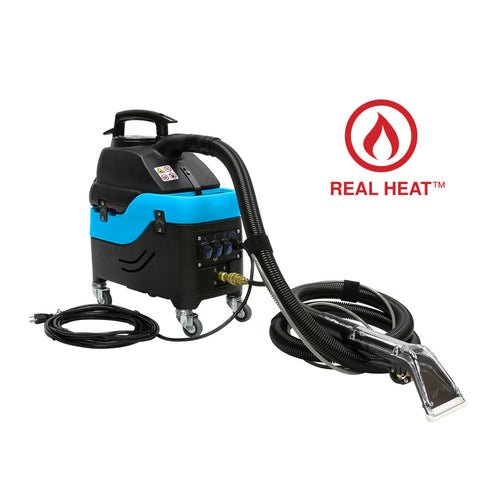 The Mytee S-300H Tempo portable carpet spotter is a commercial cleaning powerhouse in a small frame. This heated extractor weighs in at only 26 pounds and is great for auto detailing, carpet and upholstery spotting, and so much more! It features a powerful 600 watt heater that continuously heats the water, so it is hot and ready to go when you need it. A 2-stage vacuum motor produces 85" of waterlift, making this model one of the most powerful spotters in the industry! More vacuum power leaves carpets drier, and your customers happier.