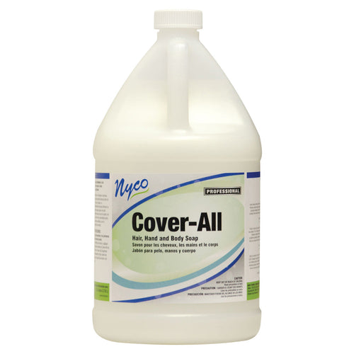 Nyco Cover-All is a thick, silky, creamy, lathering lotionized cleaner containing lanolin, glycerin and other emollients. Because it is pH balanced, it leaves your skin clean, soft, smooth and protected. The rich luxurious lather thoroughly removes soil, grease and grime with a lotionized mildness. You can use this product for washing your hands, or for cleaning your whole body and hair in the shower.