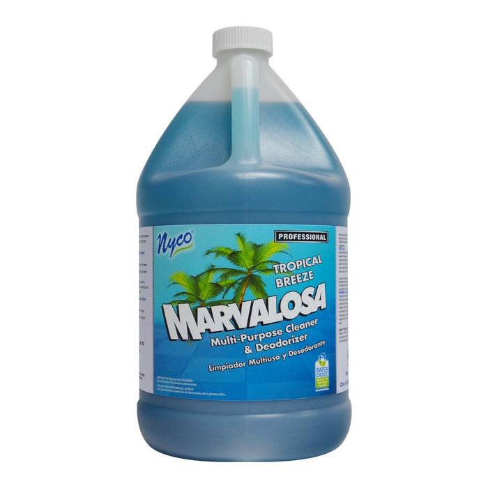 Marvalosa Tropical Breeze is your one-stop-shop for cleaning and deodorizing. This Nyco product is a multi-purpose cleaner with a tropical breeze scent that can be used on multiple surfaces like floors, walls, woodwork, countertops and more as long as they are water-safe. The solution is professional strength and highly concentrated cleaner with a neutral pH. Comes in 1 gallon bottles with 4 gallons to a case. It is also an EPA Safer Choice-certified product, so you know safer for people and the environment which makes it an excellent choice for public areas like schools, kitchens, lobbies, hotel rooms, and entrances.