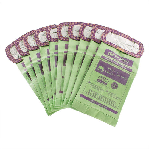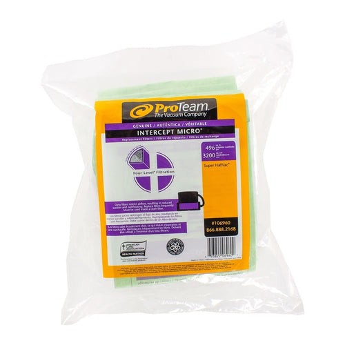 These micro filter vacuum bags (#107327) come in a 10 pack and each bag fits inside the right side of the now discontinued ProTeam® Super HalfVac® Pro. You should inspect the bag before and after using the vacuum and replace it if necessary. A clogged and dirty filter restricts the airflow and results in reduced suction and overheating of the motor. To replace the micro filter bag, simply remove old bag, slide a new bag into the cloth filter, and then secure it into the vacuum.