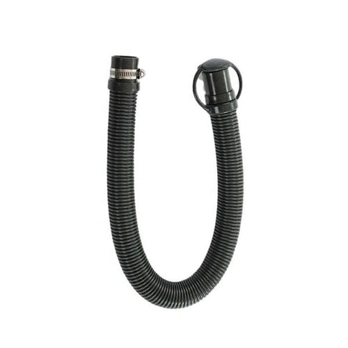 This drain dump hose is located on the rear of the Trusted Clean 'Quench' wet/dry vacuum. It is connected to the bottom of the recovery tank and then runs up the back side of the machine, and is secured by clamp to hold it in place.