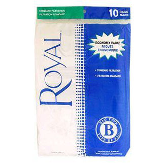 Each one of these standard 'B' style vacuum bags fits inside the outer bag system found on the Royal metal upright vacuums, like that found on the Royal CR5128Z metal upright vacuum. When used in combination with this high filtration outer bag system, you'll obtain a capture rate of 99.9% of dust and pollen as small as 1 micron, leaving only clean air behind. Each pack comes with 10 disposable bags for easy removal and disposal. In a case of 24 packs, you get a total of 240 bags.