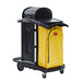 The Rubbermaid Commercial Executive High-Security Janitorial Cleaning Cart provides the most secure cart, featuring quiet casters and ball-bearing wheels along with pre-assembled locking hood and doors. With a 7.25 ft³ storage capacity, users will spend less time retrieving supplies and more time completing the task at hand.