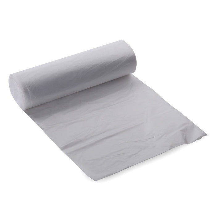 These Sak-It 10 gallon clear trash can liners are a medium duty bag (15 pound max load rating), and are ideal for most trash applications. Each bag measures 24" x 24", and are 6 microns thick. High density polyethylene resin allows these can liners to be produced at approximately 1/3 the weight of traditional can liners with the same capacity. A lower weight bag of superior strength means less material is being used in production, The star seal bottom helps prevent leaking. Perforated for easy dispensing.