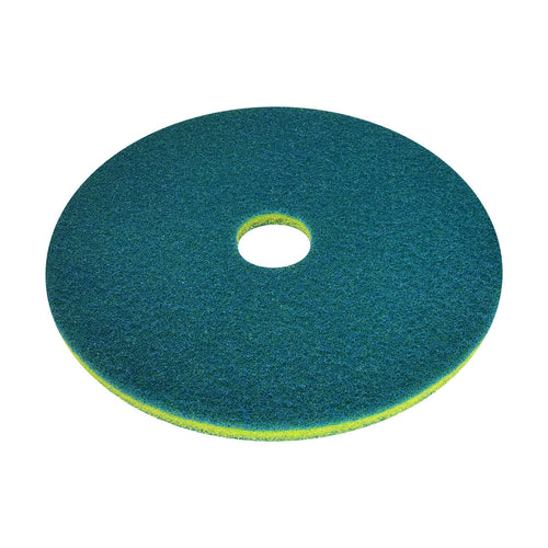 These eco-friendly pads can be used with many flooring types (coated/uncoated) and can be used on VCT, vinyl, ceramic tile, stone, terrazzo, concrete, marble, granite, and rubber. Each pad can be used on both sides and has a yellow wear indicator to tell you when the pad needs changing out. Pads should be flipped and rinsed each day for best performance.
