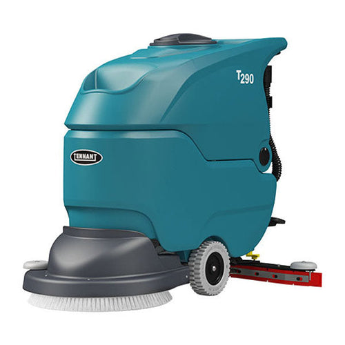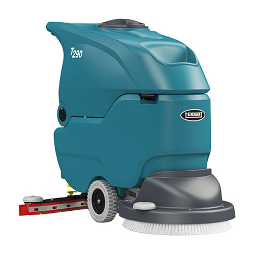 The Tennant T290 auto scrubber comes with a pad driver, an on-board charger, two 12V 130 AH Wet batteries, and 1 red pad. The batteries supply the machine with up to 3 hours of run time at a max scrubbing speed of 2.2 MPH which allows you to clean up to 19,600 ft²/hour.