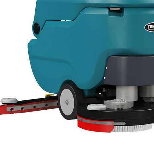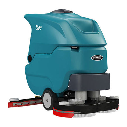 If you want a dependable clean without sacrificing productivity, this is the scrubber for you! The T390 is a straightforward scrubber that allows for quick cleaning. With the intuitive control panel’s indicator light, you’ll know when the solution tank level is low. The scrubber has a steel scrub deck and roller guide wheels to protect the facility. Be more efficient with its simple no-tool brush and squeegee blade replacement. The large 17-gallon (65 liter) solution tank, paired with a wide 28" (700 mm) cleaning path, means you can clean more in less time. Reduce the risk of slip-and-fall accidents with a durable V-shaped squeegee design and standard natural rubber squeegee blades. Accessing the internal components for maintenance is easy because the recovery tank tilts back. You can expect the Tennant T390 to cover up to 26,950 square feet per hour with a run time of up to 2.3 hours, making it ideal for use in medium-sized spaces, like schools, hospitals, and retail stores.