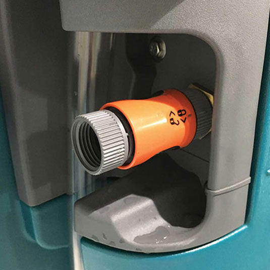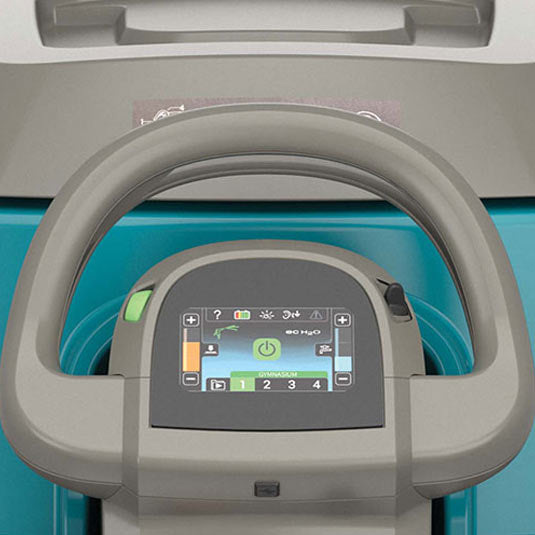 The Tennant T500e is a scrubber that has plenty of tank capacity without being bulky and hard to use. Its ergonomic design has many features that make cleaning a breeze. The T500E decreases the use of daily floor cleaning chemicals and the amount of water needed with the detergent-free EC-H2O® NanoClean technology. Its Insta-Fit™ and gimbal mount heads mean installing disk pads is faster. The automatic battery watering system is almost maintenance-free, making your batteries last longer with no extra work. Lowering and raising the squeegee is also easy, thanks to convenient foot-activated controls. The propel direction switch and speed settings are within reaching range, so you don’t have to stretch or stress yourself to operate this machine. Finally, the integrated p-trap all but eliminates water drips.