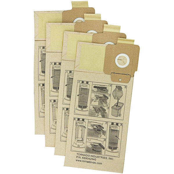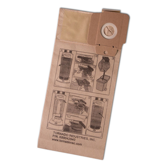 These replacement bags come 10 per pack, and can be used on the Tornado® CVD30, CVD38 and Kärcher® CV 300 upright vacuums. We recommend checking the bag fullness before each use of your vacuum to ensure maximum recovery efficiency from your vacuum. An overflowing bag can drastically reduce your vacuums performance.