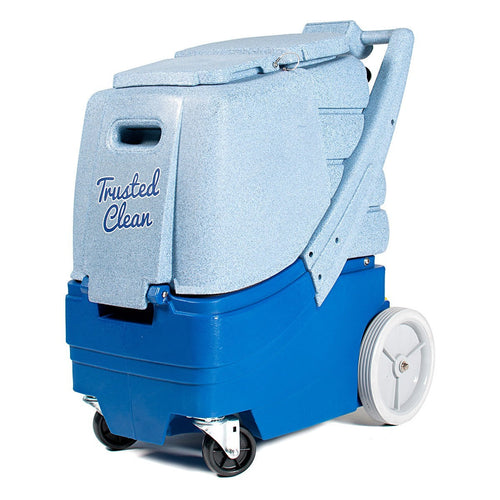The Trusted Clean Ultimate is a 12 gallon box extractor that comes with an external heater for extreme cleaning. This heater can be disconnected in limited power situations, or if it happens to fail, you can still use your extractor as a non-heated unit. It is considered to be a state of the art extractor because of the leading edge technology, with the external heater. The power and large capacity combined with a minimum size and weight, make this model ideal for the single operator. The Ultimate extractor's hi-tech design holds a big 12-gallon tank inside a surprisingly compact body for maximum efficiency and portability, all at a very affordable price! This very powerful model delivers the ultimate in both pressure and suction, leaving carpets clean and virtually dry in record time. Comes complete with a deluxe dual-jet stainless steel S-bend wand and 25-foot hose assembly.