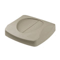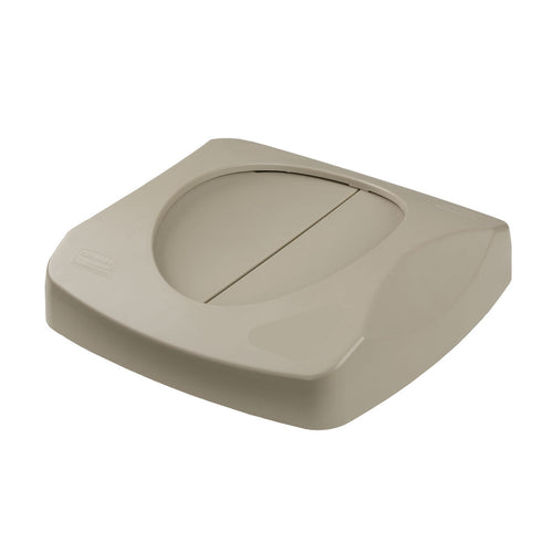 This swinging trash can lid is beige in color, and designed to be paired with the Rubbermaid Untouchable beige 23 gallon trash container. The swinging lid allows for easy disposal of items, and then hiding that waste. Constructed of high-impact polystyrene for long-lasting durability.